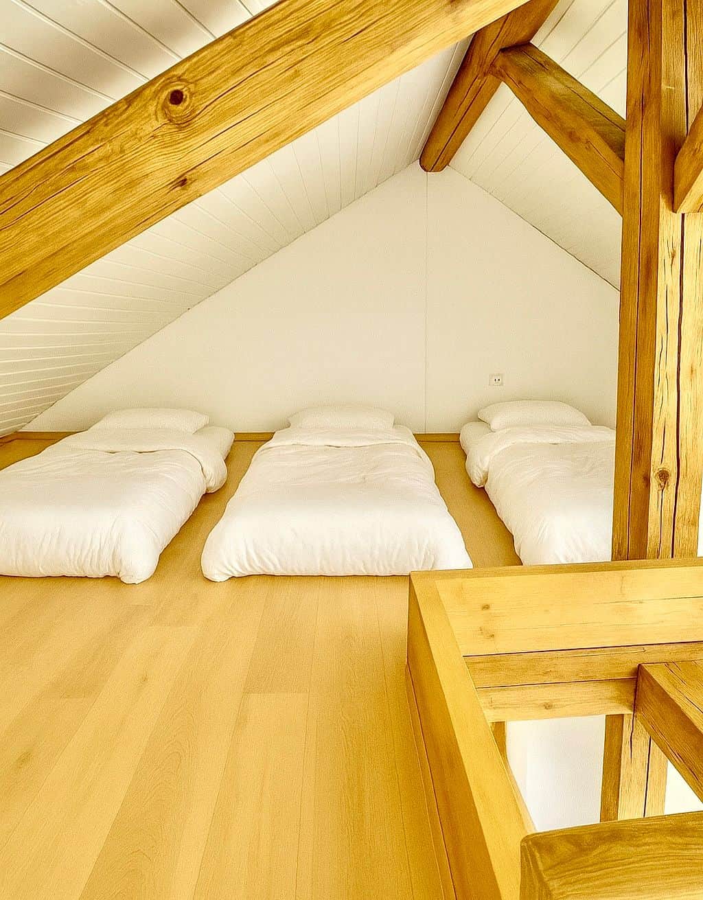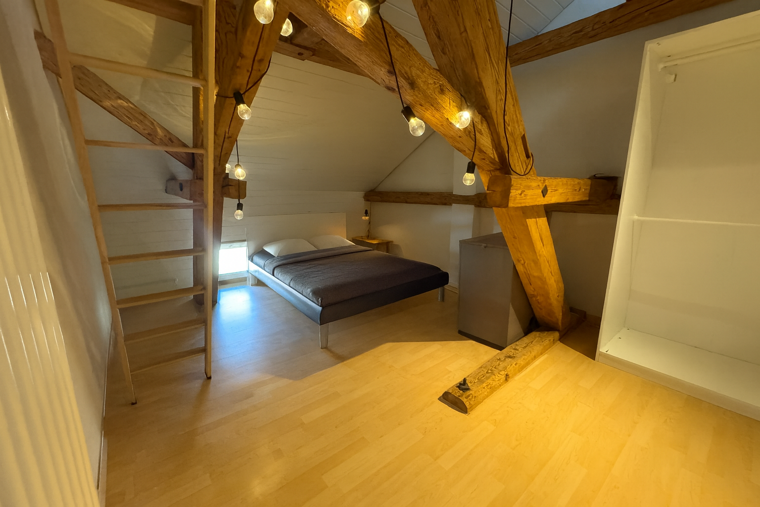Unsere Loft bietet Schlafmöglichkeiten für bis zu 5 Personen im oberen Schlafbereich, den gemütlichen Wohnbereichen und sogar im Hängenetz. Für Feiern, Events oder Tagesbesuche finden bequem 10–13 Personen Platz. Geniesst das Raumgefühl, ohne auf Komfort zu verzichten!
